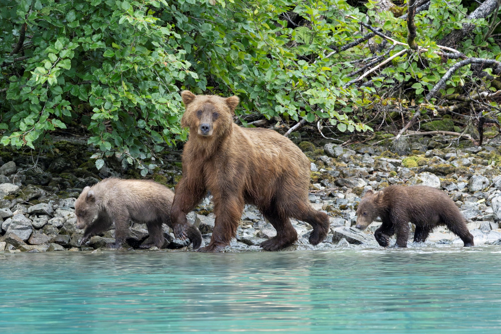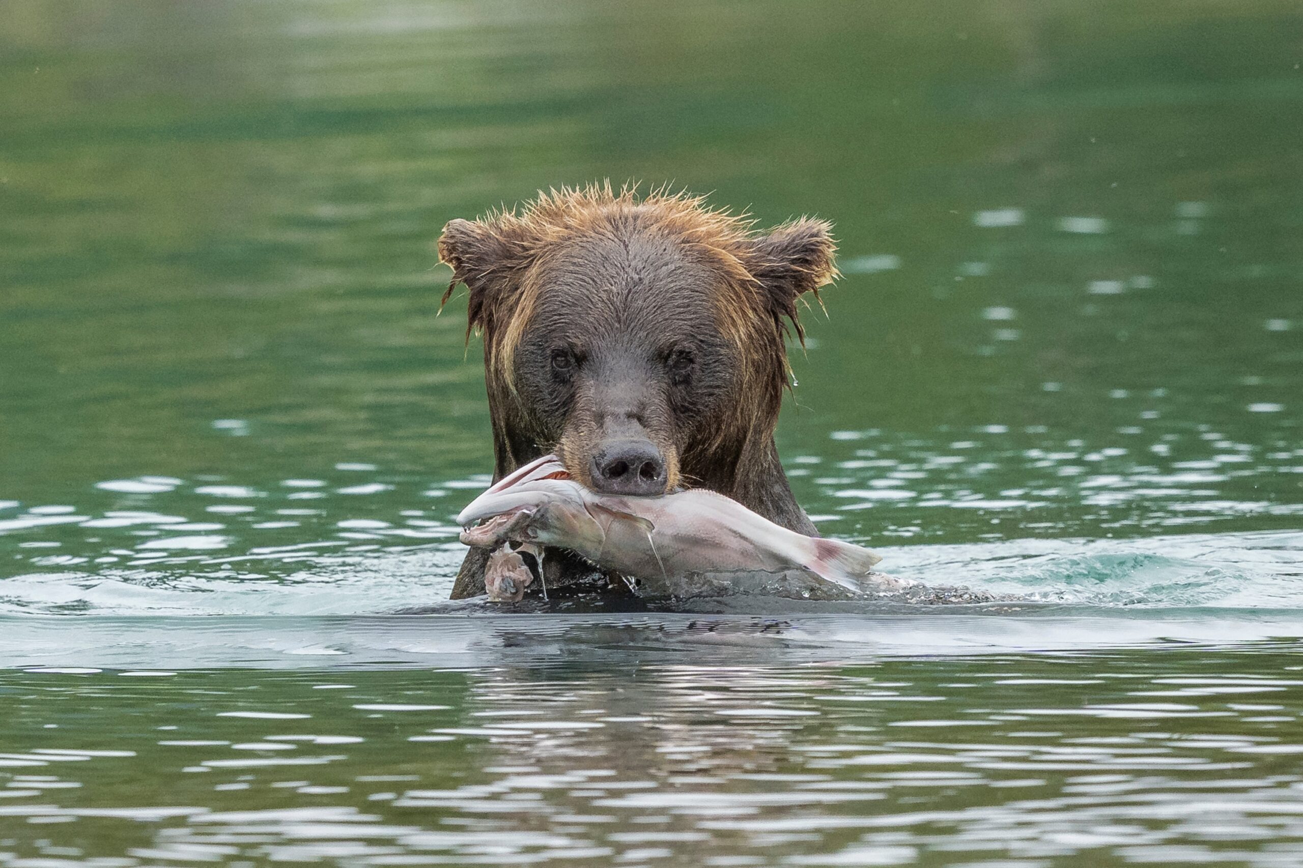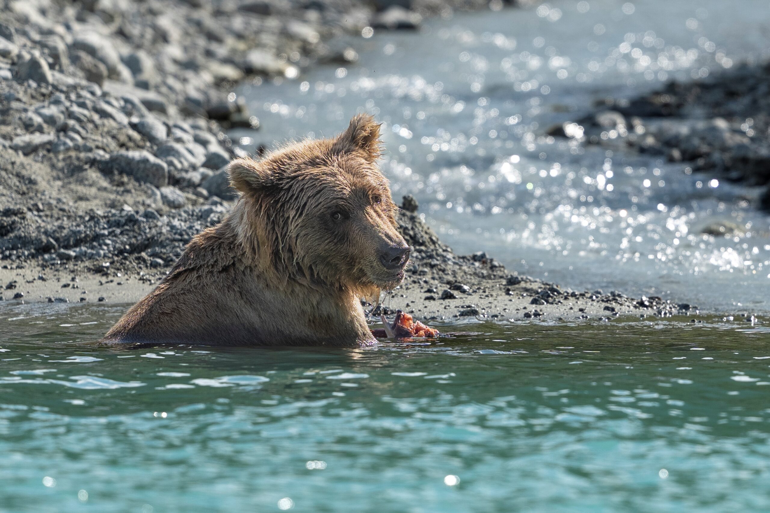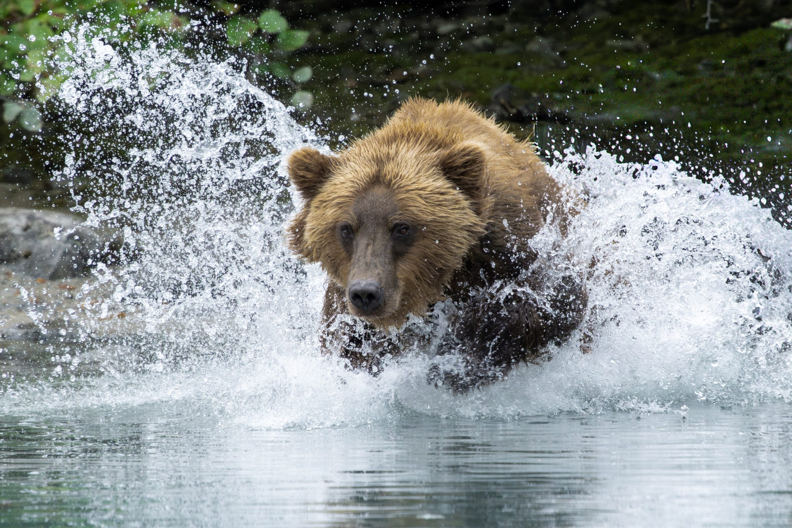 Die jährliche Lachswanderung vom Meer zurück zu den hochgelegenen Laichplätzen in den Seen Alaskas bildet eine der Hauptnahrungsquellen der Bären. Es war faszinierend, im Lake Clark Nationalpark die Grizzlies dabei zu fotografieren, wie sie sich ins Wasser stürzten und geschickt einen Fisch nach dem anderen für sich und die Jungen an Land brachten. Und die Jungen erproben derweil ihre Kräfte.