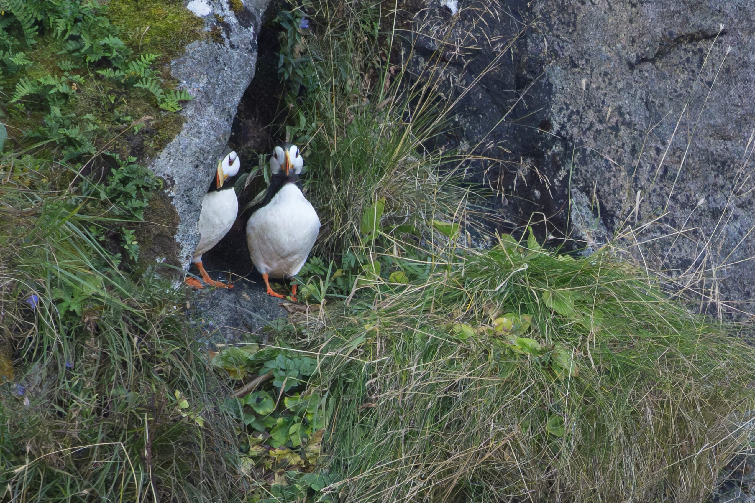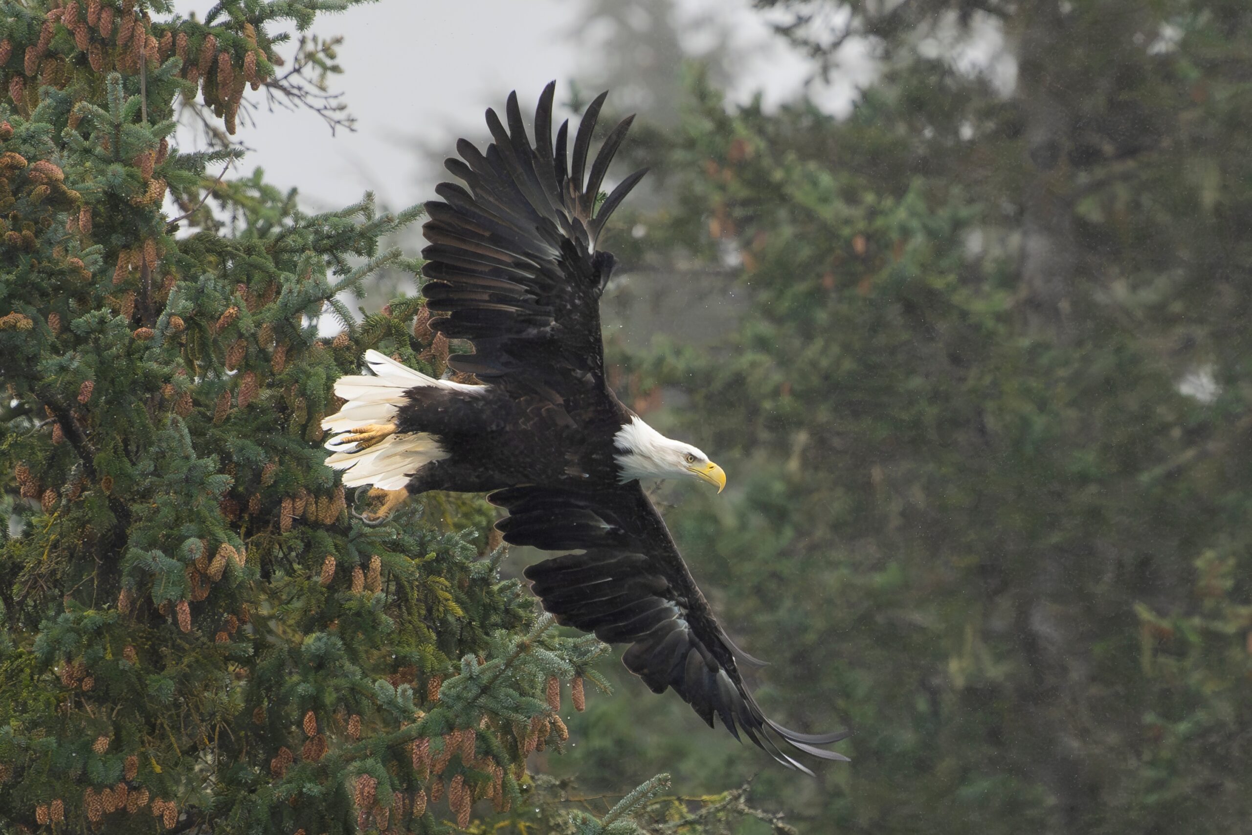 Alaska bedeutet aber auch eine vielfältige Tierwelt. Die grossen Stars sind die Braun- bzw. Grizzlybären und die Schwarzbären, sowie die Elche. Die Bären-Population wird auf 30’000 – 50’000 Tiere geschätzt, diejenige der Elche auf 155’000 – 175’000. Aber auch die Wasserwelt entlang der interessanten Küste lässt sich sehen: Wale, Orkas, Robben, Seelöwen, Weisskopf-Seeadler (das Wappentier), Papageientaucher usw.